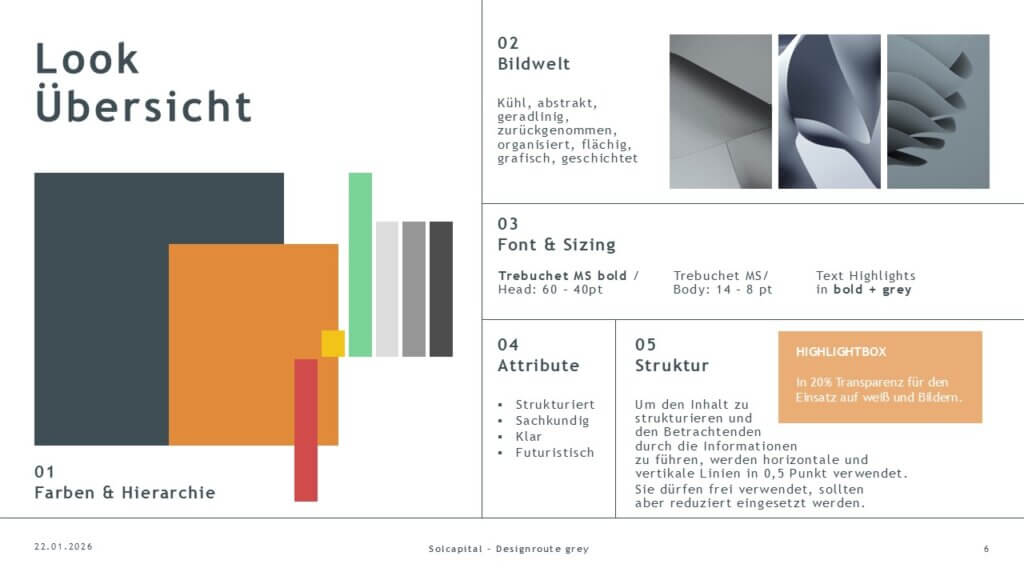 Gestaltung eines neuen Präsentationslayouts im 16:9-Format mit Fokus auf visuelle Qualität. Das Design orientiert sich am neuen Corporate Design und überträgt die visuelle Sprache der Website in ein klares, professionelles Folienset.