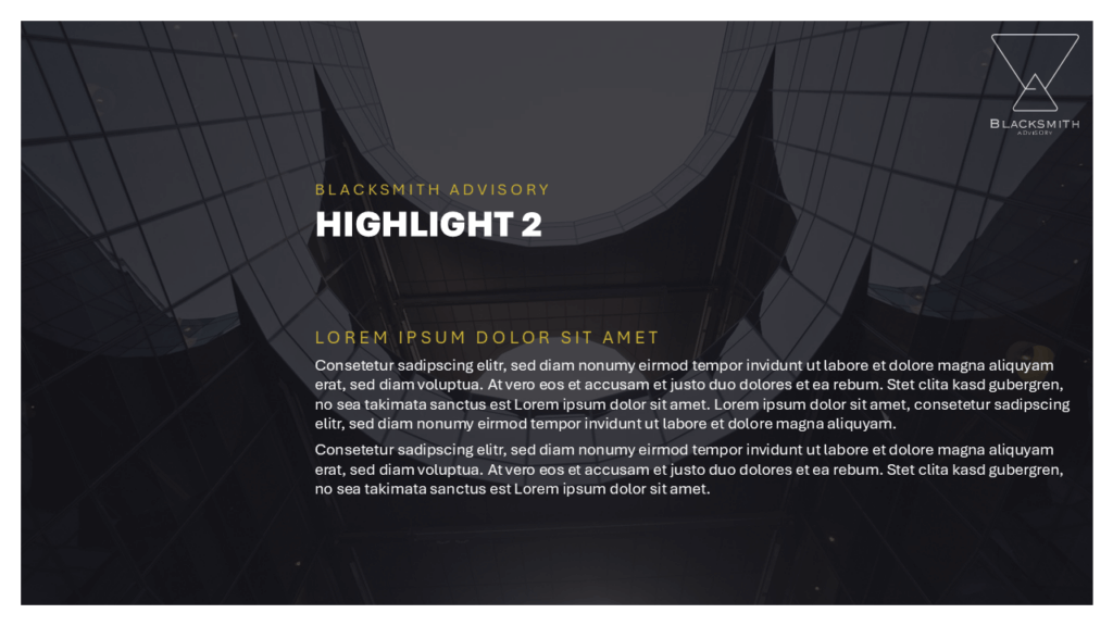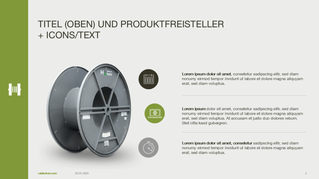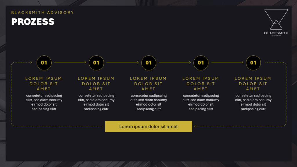 PPT-Template-Erstellung inklusive Masterdesign zur konsistenten Marken-präsentation. Konzipiert wurde ein flexibler Foliensatz, der eine hochwertige Darstellung von Inhalten ermöglicht und den Gestaltungsaufwand im Alltag reduziert.