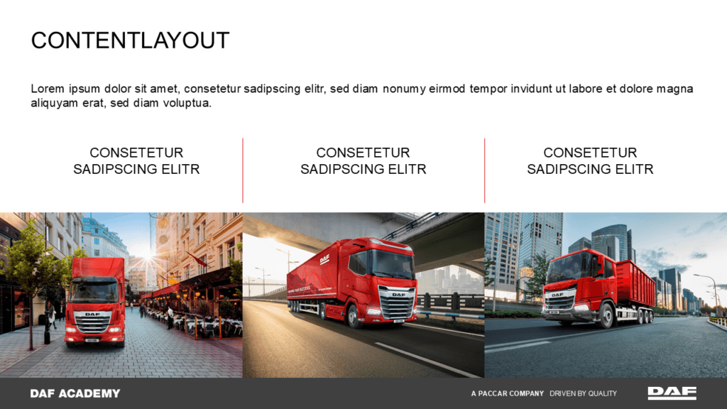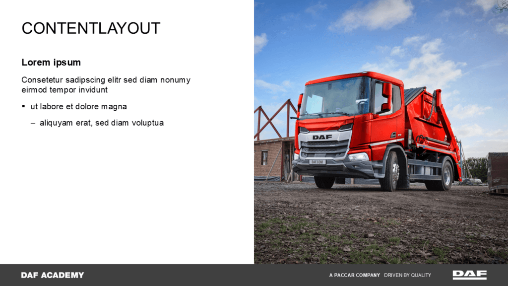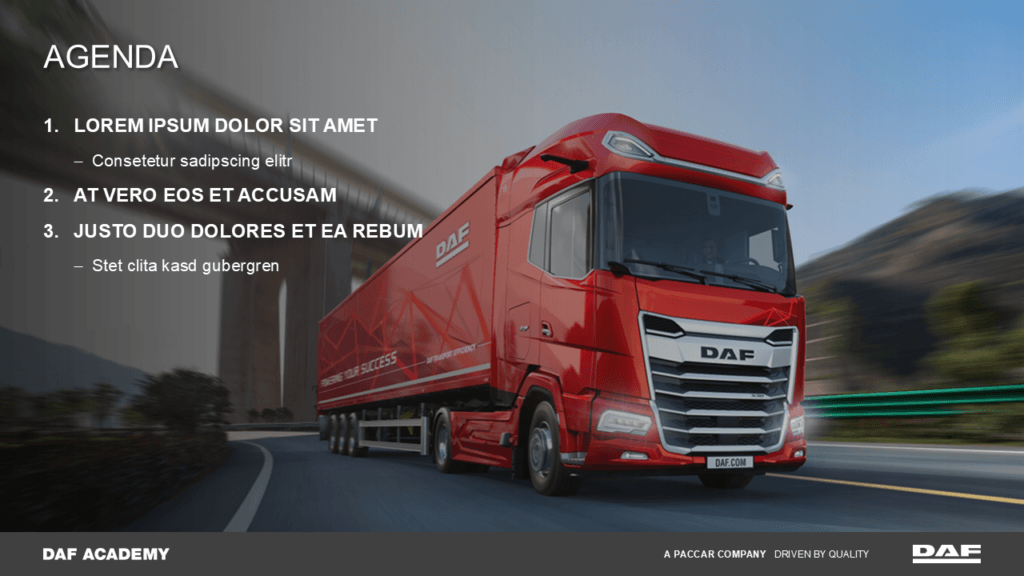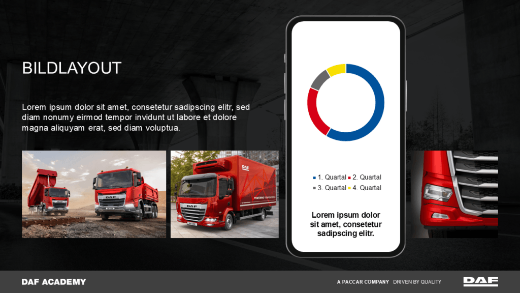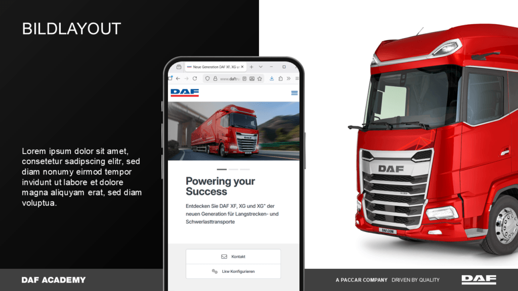 Für DAF sollte eine einheitliche und professionelle Grundlage für Schulungspräsentationen geschaffen werden, die von unterschiedlichen Referenten genutzt werden.