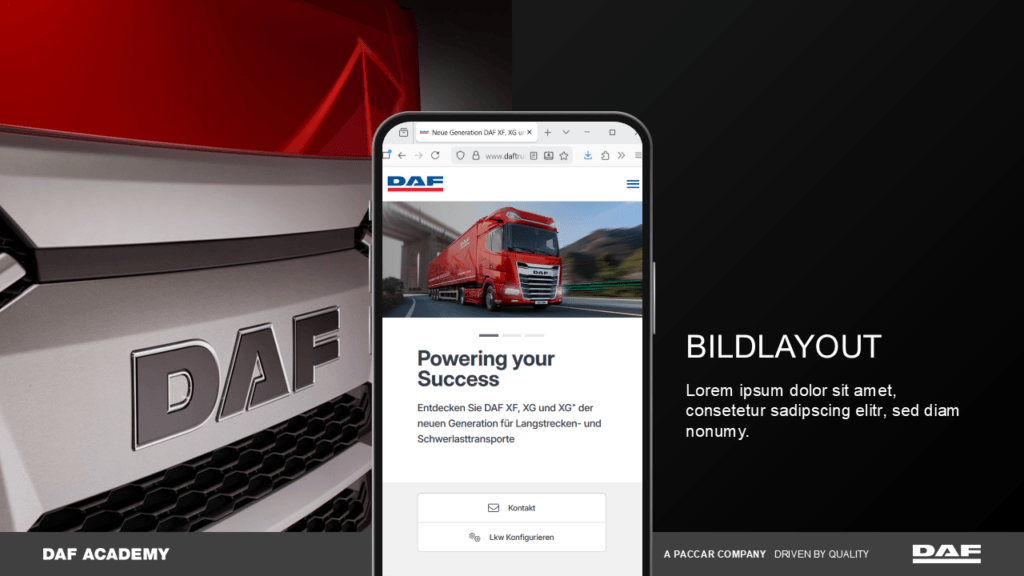 Für DAF sollte ein neues Grundgerüst für Schulungspräsentationen geschaffen werden, das von unterschiedlichen Referenten genutzt werden.
