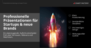 Eine professionelle Präsentation ist für Startups und neue Marken kein reines Kommunikationsmittel, sondern ein strategisches Werkzeug zur Marktpositionierung. Sie schafft Klarheit, Vertrauen und Differenzierung – drei Faktoren, die über Wachstum und Erfolg maßgeblich mitentscheiden.